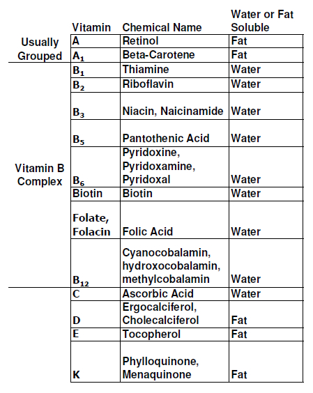 Vitamins fall into two categories: fat soluble and water soluble. The fat-soluble vitamins — A, D, E, and K — dissolve in fat and can be stored in your body. The water-soluble vitamins — C and the B-complex vitamins (such as vitamins B6, B12, niacin, riboflavin, and folate) — need to dissolve in water before your body can absorb them. Because of this, your body can’t store these vitamins. Any vitamin C or B that your body doesn’t use as it passes through your system is lost (mostly when you pee). So you need a fresh supply of these vitamins every day.