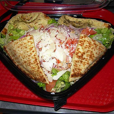 One salad, dressing and bread included: 1,070 calories, 71g fat, 1,770mg sodium.
