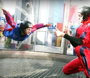 skydive indoors. The facility is a vertical wind tunnel that looks like a spaceship from the outside. From the inside, the adrenaline starts racing as you hear the roar of the engines.
