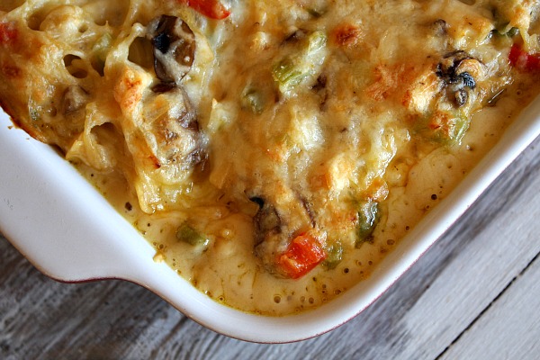 Tired of the same of chicken dish for dinner? Then give this casserole a try. A savory one dish meal made up of sautéed vegetables, spaghetti and chicken. While baked in a creamy cheese sauce. Talk about rib-sticking, heart and soul comfort food to the max. YUM-O!