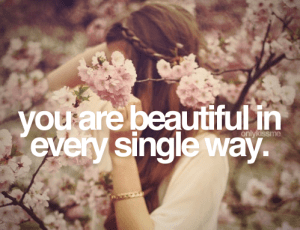 So many times in todays society women are pressured to be something they are not. Whether it’s by coworkers, friends, the media. Sometimes we forget about the things that make us unique and beautiful. We put ourselves down so much that eventually we can’t even think of anything good about ourselves. Sometimes it’s so bad that we get mad at other women who we think are more beautiful and we get angry when women talk about what they like about themselves. But today I’m going to challenge you to think about the things that you think makes you beautiful and feel free to post them in a comment, no holds bar, even if you think your starting to sound vain. Love You Much & Have A Beautiful Day 🙂